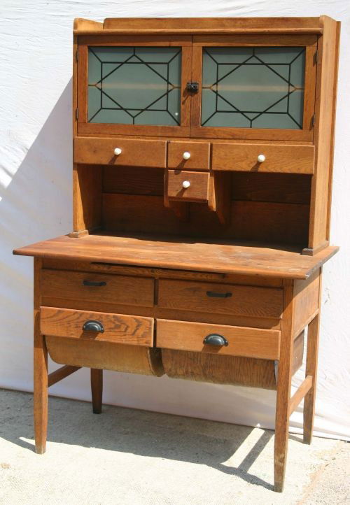Available for your bidding pleasure we have this early 1900's oak full size hoosier cabinet.many homes were;
