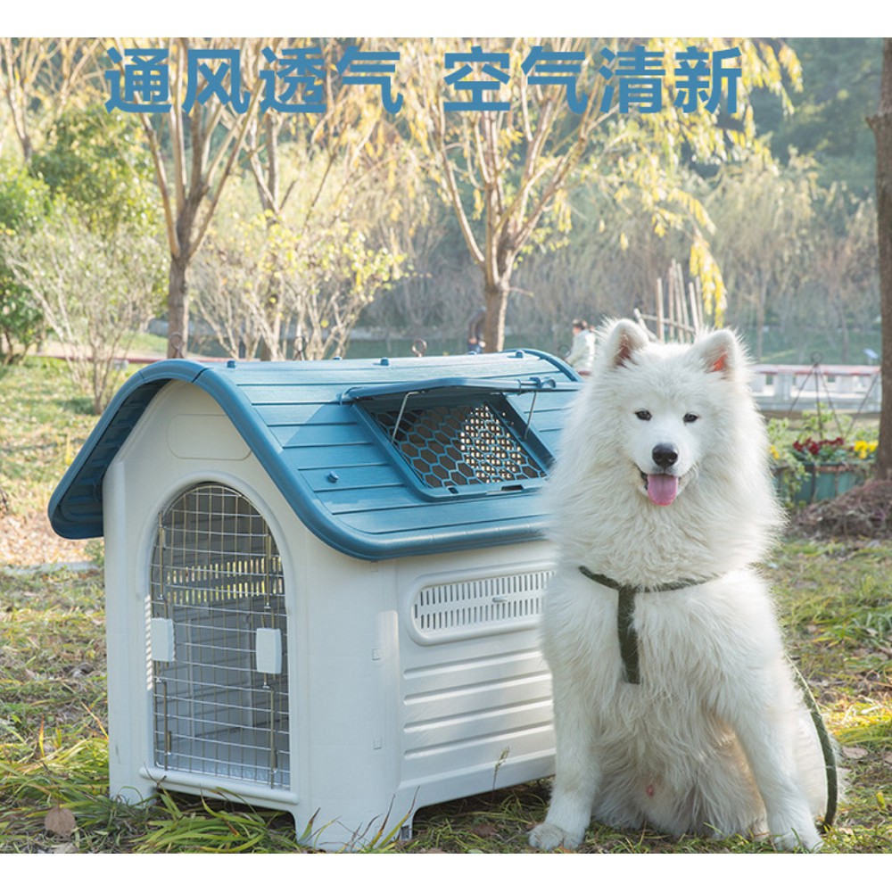 The elevated floor keeps your big dog's new home from flooding and the ample room and tall entrance make it great for tall dogs. The door flaps hang from. Notice on the commercial plastic dog houses that the front lip is very low. Our dog crate features both top and front entrances. Large waterproof outdoor indoor plastic pet puppy dog house home shelter kennel.
